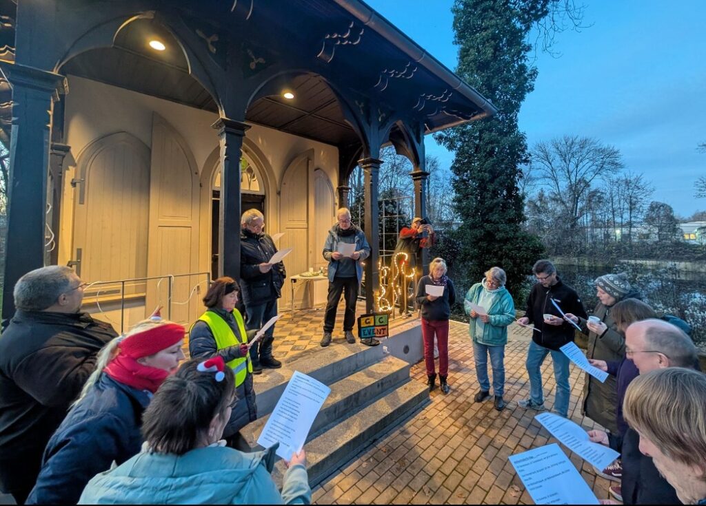 Türchen 11 lockte einige sangesfreudigen GeoCacher ans Kontorhäuschen zum Ad(E)ventskalender 2025 mit Leckereien, Kinderpunsch und stimmungsvoll dargebotener Gesangseinlage: 15 Weihnachtslieder (für Eilige) in 1:13.98 min.