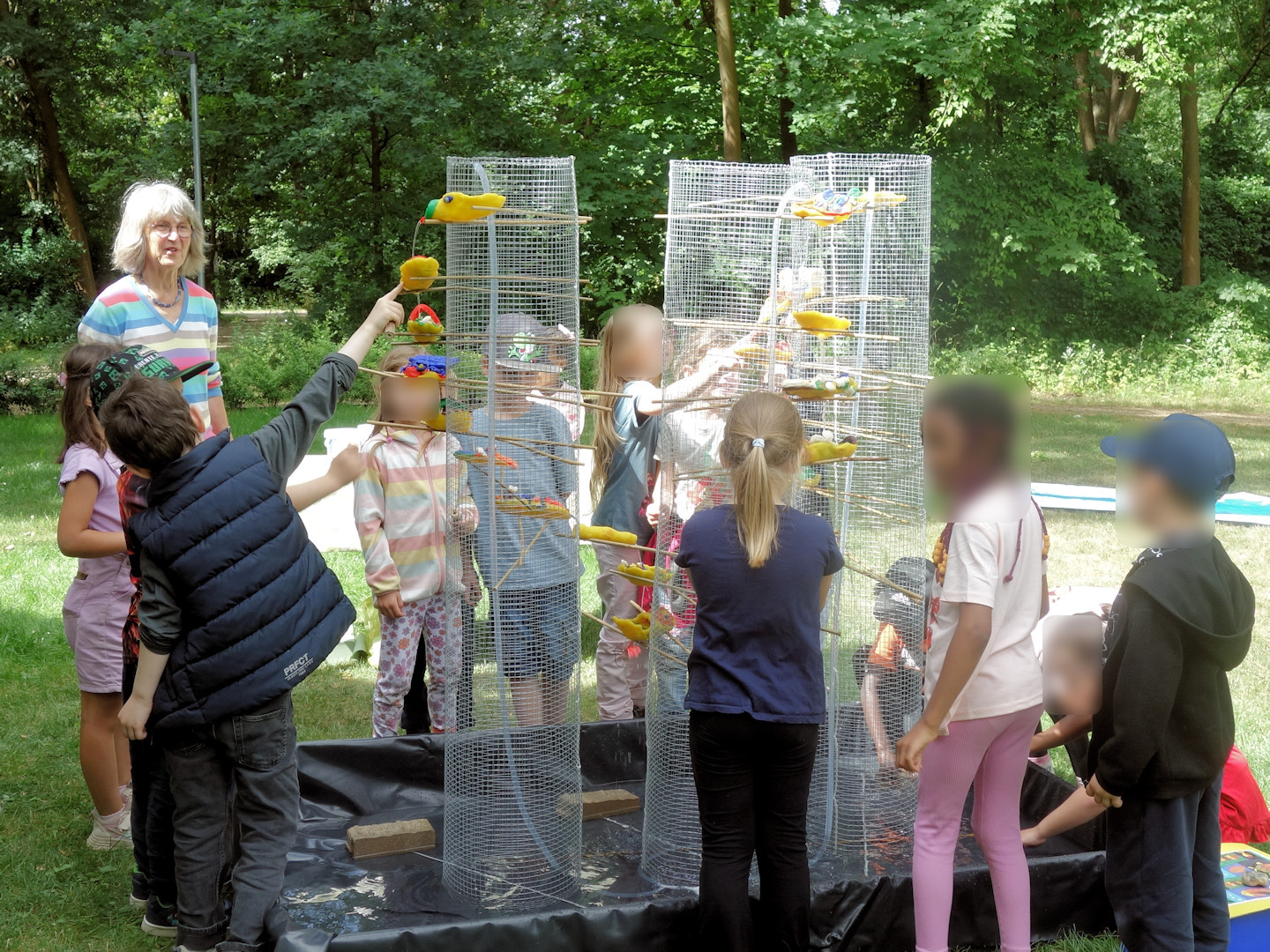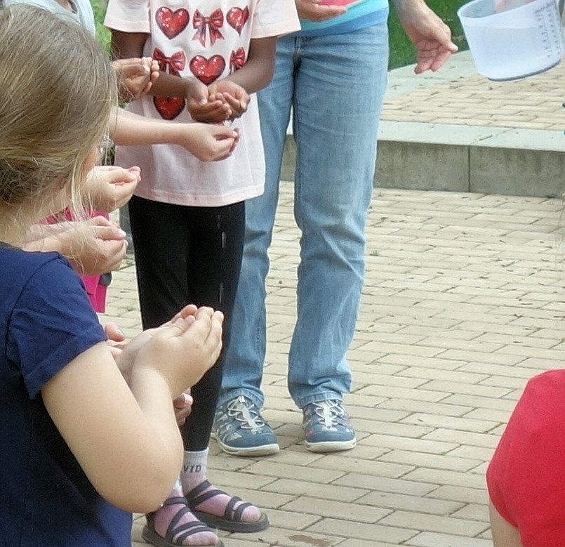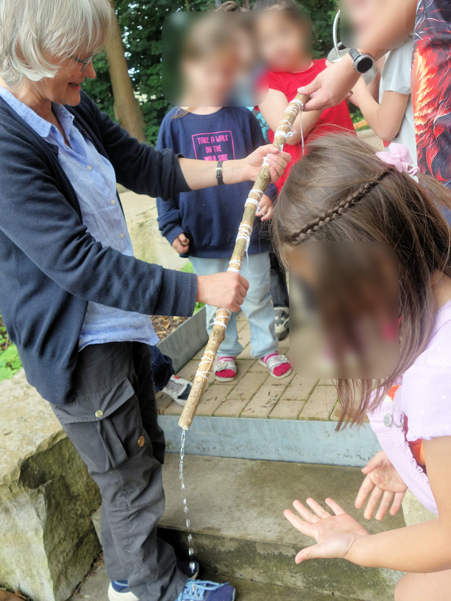 Im Rahmen der BINGO-Umweltwoche haben wir in Zusammenarbeit mit der Erzählwerkstatt und durch Förderung der BINGO-Umweltstiftung Niedersachsen einen Vormittag für die „Schukis“ der Kita Schwedenheim veranstaltet. Die Erzählerin und Naturpädagogin Dorothea Nennewitz führte in den Wasserkreislauf ein. Dann gingen wir der Frage nach, wie das Wasser zum Beispiel vom Jödebrunnen zum Altstadtmarkt kommt. In jeweils zwei Gruppen wurden aus Holunderstengeln Pipen und eine zusammenhängende Wasserleitung gebaut sowie Brunnenschalen am Mitmachbrunnen.